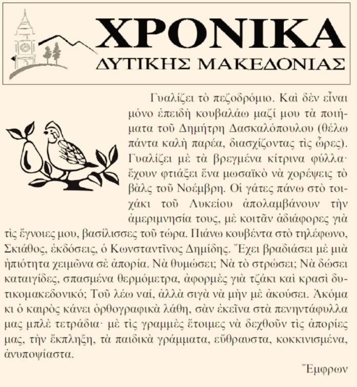 κοινοποίηση FacebookXPinterestWhatsApp Πρέπει να διαβάσετε «Συγχαρητήριο μήνυμα της Διεύθυνσης Δευτεροβάθμιας Εκπαίδευσης Γρεβενών για τη διάκριση μαθήτριας στο Πανελλήνιο Σχολικό Πρωτάθλημα Αντισφαίρισης ΓΕΛ & ΕΠΑΛ 2025-2026» 15 Απριλίου 2026 Η Αντρομάνα στην Δεσκάτη 14 Απριλίου 2026 Δήμος Γρεβενών: Έκθεση Φωτογραφίας & Ζωγραφικής «Τα όμορφα χωριά των Γρεβενών: Ο τόπος και οι άνθρωποι». 14 Απριλίου 2026 TO BAZAAR ΤΟΥ ΠΑΣΧΑ 2026 ΤΗΣ “ΕΛΠΙΔΑΣ” ΓΕΦΥΡΑ ΑΓΑΠΗΣ 14 Απριλίου 2026 myGrevenaΔεν είμαστε “φορείς ” της Τέταρτης Εξουσίας. Ο ρόλος μιας εφημερίδας είναι να αφουγκράζεται τους πόνους και τις χαρές ενός τόπου και των ανθρώπων του και αυτούς να διακονεί, να υπηρετεί τις ανάγκες τους, όχι να εξουσιάζει. Έμφρων Έμφρων 21.11.2025 Από myGrevena 21 Νοεμβρίου 2025 ΕτικέτεςΑΝΤΩΝΗΣ Ν. ΠΑΠΑΒΑΣΙΛΕΙΟΥ κοινοποίηση FacebookXPinterestWhatsApp Προηγούμενο άρθροΔΕΥΑΓ: Μη πόσιμο το νερό για σήμεραΕπόμενο άρθροΠρωτοσέλιδο 21.11.2025 Πρόσφατες δημοσιεύσεις Τα υφαντά της Σαμαρίνας 15 Απριλίου 2026 Από Δευτέρα 20 Απριλίου η υποβολή αιτήσεων επιχειρήσεων για τη νέα δράση απασχόλησης της ΔΥΠΑ με επιδότηση έως 14.220 € σε περιοχές απολιγνιτοποίησης 15 Απριλίου 2026 Πρόσκληση στις Πολιτιστικές Εκδηλώσεις των Αμυγδαλιών Γρεβενών. 15 Απριλίου 2026 Λειτουργία Ψυχιατρικού Ε.Ι. στο Γ.Ν. Γρεβενών 15 Απριλίου 2026 Ευχαριστήρια επιστολή 15 Απριλίου 2026