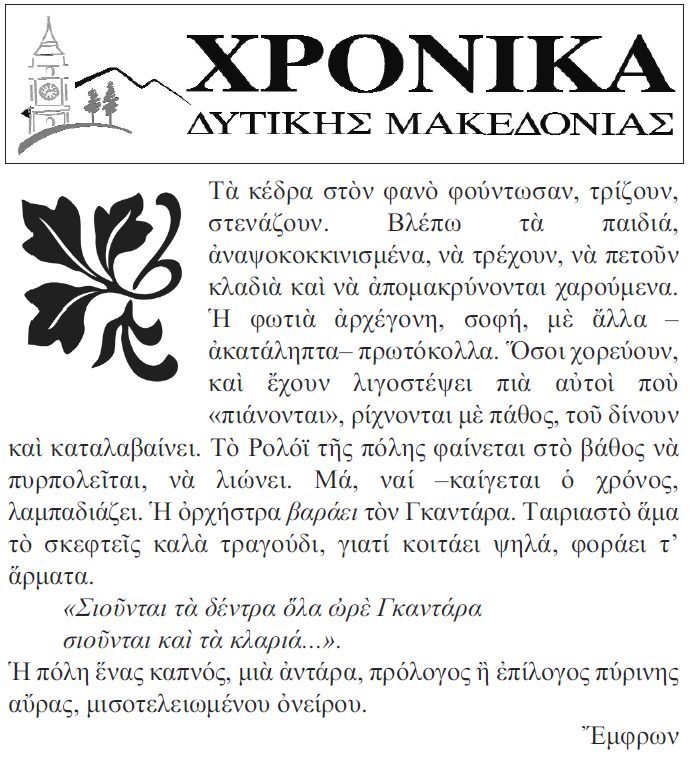 κοινοποίηση FacebookXPinterestWhatsApp Πρέπει να διαβάσετε «Συγχαρητήριο μήνυμα της Διεύθυνσης Δευτεροβάθμιας Εκπαίδευσης Γρεβενών για τη διάκριση μαθήτριας στο Πανελλήνιο Σχολικό Πρωτάθλημα Αντισφαίρισης ΓΕΛ & ΕΠΑΛ 2025-2026» 15 Απριλίου 2026 Η Αντρομάνα στην Δεσκάτη 14 Απριλίου 2026 Δήμος Γρεβενών: Έκθεση Φωτογραφίας & Ζωγραφικής «Τα όμορφα χωριά των Γρεβενών: Ο τόπος και οι άνθρωποι». 14 Απριλίου 2026 TO BAZAAR ΤΟΥ ΠΑΣΧΑ 2026 ΤΗΣ “ΕΛΠΙΔΑΣ” ΓΕΦΥΡΑ ΑΓΑΠΗΣ 14 Απριλίου 2026 myGrevenaΔεν είμαστε “φορείς ” της Τέταρτης Εξουσίας. Ο ρόλος μιας εφημερίδας είναι να αφουγκράζεται τους πόνους και τις χαρές ενός τόπου και των ανθρώπων του και αυτούς να διακονεί, να υπηρετεί τις ανάγκες τους, όχι να εξουσιάζει. Έμφρων Έμφρων 27.2.2026 Από myGrevena 27 Φεβρουαρίου 2026 Ετικέτες'ΕμφρωνΑΝΤΩΝΗΣ Ν. ΠΑΠΑΒΑΣΙΛΕΙΟΥ κοινοποίηση FacebookXPinterestWhatsApp Προηγούμενο άρθροΈμφρων 20.2.2026Επόμενο άρθροΠΡΟΣΚΛΗΣΗ Πρόσφατες δημοσιεύσεις Τα υφαντά της Σαμαρίνας 15 Απριλίου 2026 Από Δευτέρα 20 Απριλίου η υποβολή αιτήσεων επιχειρήσεων για τη νέα δράση απασχόλησης της ΔΥΠΑ με επιδότηση έως 14.220 € σε περιοχές απολιγνιτοποίησης 15 Απριλίου 2026 Πρόσκληση στις Πολιτιστικές Εκδηλώσεις των Αμυγδαλιών Γρεβενών. 15 Απριλίου 2026 Λειτουργία Ψυχιατρικού Ε.Ι. στο Γ.Ν. Γρεβενών 15 Απριλίου 2026 Ευχαριστήρια επιστολή 15 Απριλίου 2026