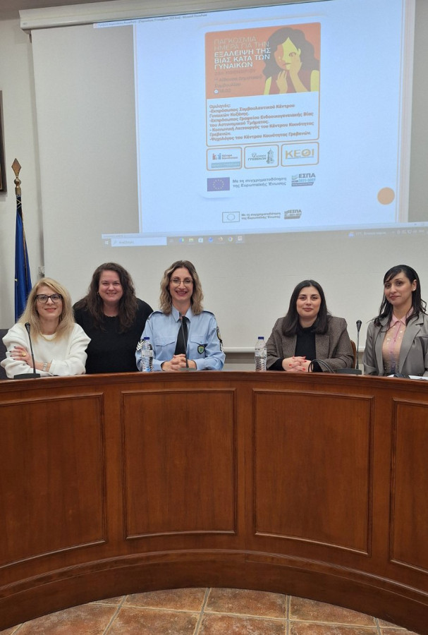 Αστυνομικοί του Γραφείου Αντιμετώπισης Ενδοοικογενειακής Βίας Γρεβενών, συμμετείχαν σε εκδήλωση που διοργάνωσε το Κέντρο Κοινότητας του Δήμου Γρεβενών στο πλαίσιο της Παγκόσμιας Ημέρας για την Εξάλειψη της Βίας κατά των γυναικών (25-11-2025), που πραγματοποιήθηκε την 25 Νοεμβρίου 2025, στην αίθουσα του Δημοτικού Συμβουλίου Γρεβενών, με θέμα «ο ρόλος της Ελληνικής Αστυνομίας στην πρόληψη και την αντιμετώπιση της ενδοοικογενειακής βίας».