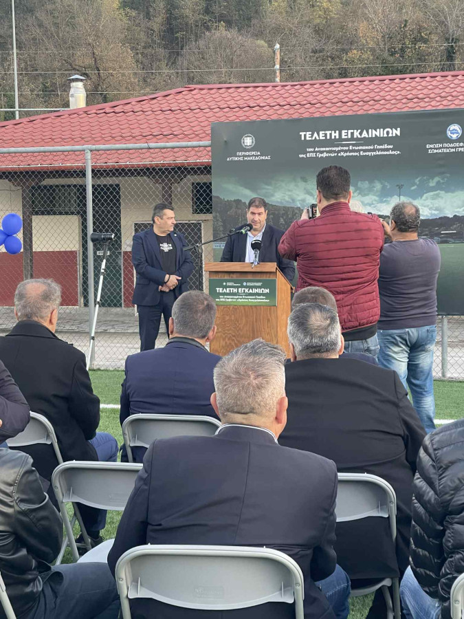 Επίσης χθες, 11 Νοεμβρίου 2025, ο Αναπληρωτής Υπουργός Αθλητισμού κ. Γιάννης Βρούτσης παραβρέθηκε στον αγιασμό και στα εγκαίνια του ανακαινισμένου Ενωσιακού Γηπέδου “Χρήστος Ευαγγελόπουλος” της ΕΠΣ Γρεβενών, όπου τα έργα που υλοποιήθηκαν συμβάλλουν τα μέγιστα στην ανάπτυξη και αναβάθμιση του ποδοσφαίρου στην περιοχή.