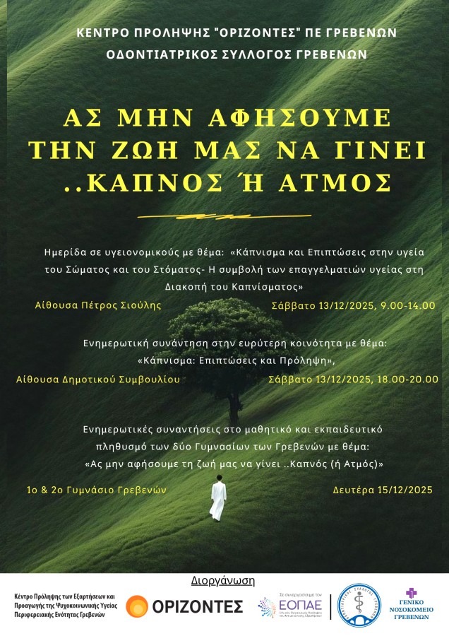 κοινοποίηση FacebookXPinterestWhatsApp Πρέπει να διαβάσετε Πρόσκληση στις Πολιτιστικές Εκδηλώσεις των Αμυγδαλιών Γρεβενών. 15 Απριλίου 2026 Λειτουργία Ψυχιατρικού Ε.Ι. στο Γ.Ν. Γρεβενών 15 Απριλίου 2026 Ευχαριστήρια επιστολή 15 Απριλίου 2026 «Συγχαρητήριο μήνυμα της Διεύθυνσης Δευτεροβάθμιας Εκπαίδευσης Γρεβενών για τη διάκριση μαθήτριας στο Πανελλήνιο Σχολικό Πρωτάθλημα Αντισφαίρισης ΓΕΛ & ΕΠΑΛ 2025-2026» 15 Απριλίου 2026 myGrevenaΔεν είμαστε “φορείς ” της Τέταρτης Εξουσίας. Ο ρόλος μιας εφημερίδας είναι να αφουγκράζεται τους πόνους και τις χαρές ενός τόπου και των ανθρώπων του και αυτούς να διακονεί, να υπηρετεί τις ανάγκες τους, όχι να εξουσιάζει. ΕιδησεογραφίαΓρεβενάΕκδηλώσεις Ενημερωτικές εκδηλώσεις για την υγεία μας Από myGrevena 5 Δεκεμβρίου 2025 ΕτικέτεςΟΔΟΝΤΙΑΤΡΙΚΟΣ ΣΥΛΛΟΓΟΣ ΓΡΕΒΕΝΩΝΟΡΙΖΟΝΤΕΣ κοινοποίηση FacebookXPinterestWhatsApp Προηγούμενο άρθροΣυμπαράσταση του Επιμελητηρίου Γρεβενών στον αγροτικό κόσμο του ΝομούΕπόμενο άρθροΠρωτοσέλιδο 5.12.2025 Πρόσφατες δημοσιεύσεις «Τα όμορφα χωριά των Γρεβενών: Ο τόπος και οι άνθρωποι»: Η αυλαία άνοιξε και τα Γρεβενά συστήνονται αλλιώς 16 Απριλίου 2026 Κινηματογράφος 16 Απριλίου 2026 Θερινό ωράριο καταστημάτων 16 Απριλίου 2026 Τα υφαντά της Σαμαρίνας 15 Απριλίου 2026 Από Δευτέρα 20 Απριλίου η υποβολή αιτήσεων επιχειρήσεων για τη νέα δράση απασχόλησης της ΔΥΠΑ με επιδότηση έως 14.220 € σε περιοχές απολιγνιτοποίησης 15 Απριλίου 2026