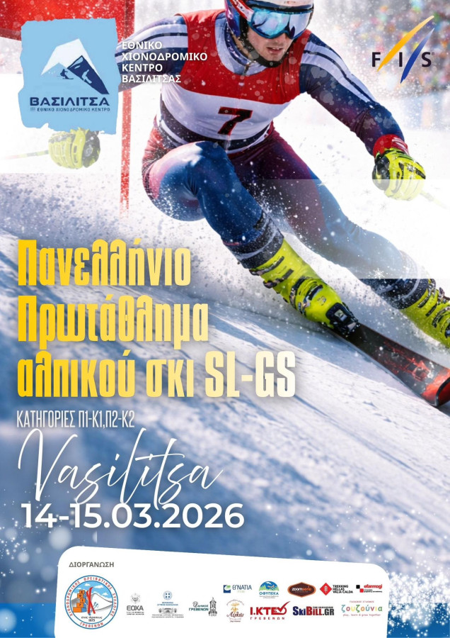 Το Εθνικό Χιονοδρομικό Κέντρο Βασιλίτσας φιλοξενεί το Πανελλήνιο Πρωτάθλημα και Διεθνή Αγώνα Αλπικού Σκι (SL–GS) στις κατηγορίες Π1–Κ1 και Π2–Κ2, το Σαββατοκύριακο 14 και 15 Μαρτίου 2026.