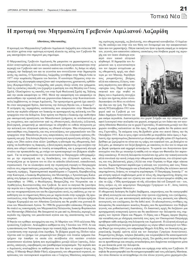 κοινοποίηση FacebookTwitterPinterestWhatsApp Πρέπει να διαβάσετε ΠΡΟΣΚΛΗΣΗ ΣΥΝΕΔΡΙΑΣΗΣ 21 Οκτωβρίου 2025 Περιφέρεια Δυτικής Μακεδονίας – Υπογραφή Προγραμματικών Συμβάσεων με την Υπουργό Πολιτισμού Λίνα Μενδώνη για τον Άγιο Νικόλαο Κοζάνης και το Γεφύρι του Πασά... 20 Οκτωβρίου 2025 Μια εξαιρετική βραδιά στην Σιάτιστα 20 Οκτωβρίου 2025 ΣΥΝΤΗΡΗΣΗ ΠΟΛΙΤΙΣΤΙΚΟΥ ΚΕΝΤΡΟΥ ΣΤΗΝ Τ.Κ. ΑΗΔΟΝΙΩΝ ΤΗΣ Π.Ε. ΓΡΕΒΕΝΩΝ 20 Οκτωβρίου 2025 myGrevenaΔεν είμαστε “φορείς ” της Τέταρτης Εξουσίας. Ο ρόλος μιας εφημερίδας είναι να αφουγκράζεται τους πόνους και τις χαρές ενός τόπου και των ανθρώπων του και αυτούς να διακονεί, να υπηρετεί τις ανάγκες τους, όχι να εξουσιάζει. ΓρεβενάΙστορία Η προτομή του Αιμιλιανού Γρεβενών Από myGrevena 21 Οκτωβρίου 2025 ‘Αρθρο του Θανάση Αθανασιάδη στην εφημερίδα μας. Μπορείτε να το μελετήσετε εδώ: ΠΡΟΤΟΜΗ ΑΙΜΙΛΙΑΝΟΥ ΓΡΕΒΕΝΩΝ κοινοποίηση FacebookTwitterPinterestWhatsApp Προηγούμενο άρθροΠεριφέρεια Δυτικής Μακεδονίας – Υπογραφή Προγραμματικών Συμβάσεων με την Υπουργό Πολιτισμού Λίνα Μενδώνη για τον Άγιο Νικόλαο Κοζάνης και το Γεφύρι του Πασά στα ΓρεβενάΕπόμενο άρθροΠΡΟΣΚΛΗΣΗ ΣΥΝΕΔΡΙΑΣΗΣ Πρόσφατες δημοσιεύσεις Δύο νοσταλγικές βραδιές μάς χάρισε η χορωδία ΛΙΓΕΙΑ 21 Οκτωβρίου 2025 Αφιέρωμα στον σπουδαίο αγιογράφο Γρηγόριο Μπαλογιάννη, από την Τρικοκκιά Γρεβενών – Για πρώτη φορά στα Γρεβενά ένα αφιέρωμα στον καταξιωμένο αγιογράφο 21 Οκτωβρίου 2025 Φ.Ο. ΠΡΩΤΕΑΣ ΓΡΕΒΕΝΩΝ – ΜΕΓΑΣ ΑΛΕΞΑΝΔΡΟΣ ΓΙΑΝΝΙΤΣΩΝ 81-48 21 Οκτωβρίου 2025 «Χρήσιμες Συμβουλές για το gov.gr» 21 Οκτωβρίου 2025 Διακοπή ηλεκτρικού ρεύματος 21 Οκτωβρίου 2025