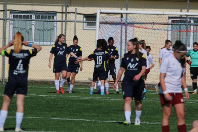 Στο 35’ ήρθε ένα ακόμη εξαιρετικό γκολ από τη Ζωή Βλάχου με δυνατό σουτ για το 3-0, σφραγίζοντας ουσιαστικά την εικόνα του πρώτου ημιχρόνου.