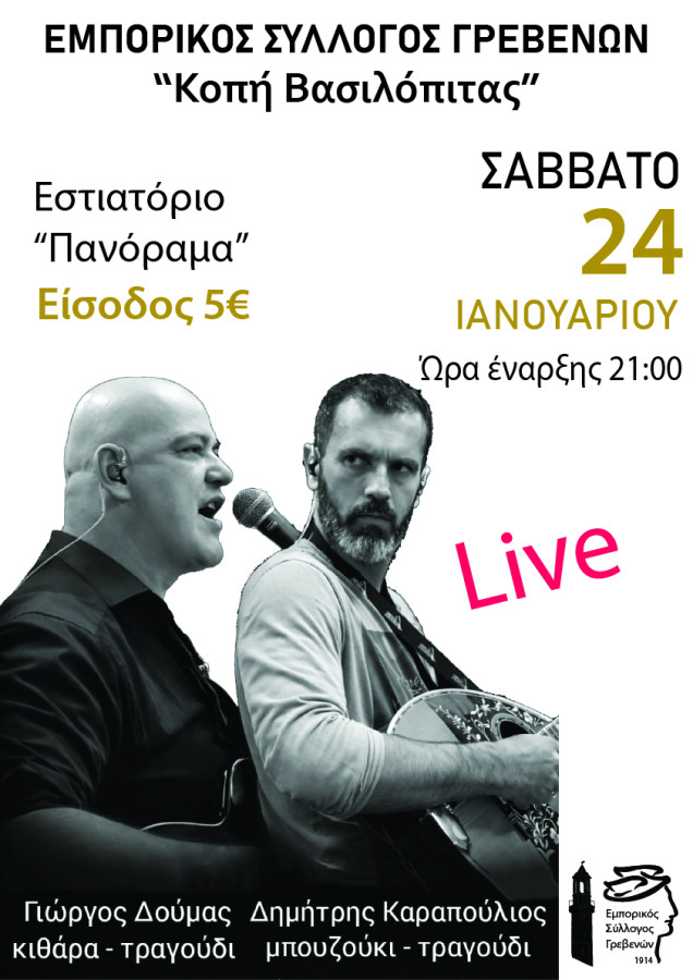 Ο Εμπορικός Σύλλογος Γρεβενών σας προσκαλεί στην κοπή της Πρωτοχρονιάτικης πίτας, που θα πραγματοποιηθεί το Σάββατο 24 Ιανουαρίου 2026 και ώρα 21:00 στο κέντρο «Πανόραμα» στη Μυρσίνη Γρεβενών.