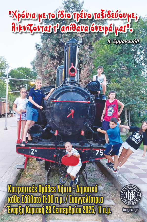 Επιτέλους έφτασε η στιγμή να ανταμώσουμε και πάλι στις κατηχητικές συντροφιές της Ι.Μ. Γρεβενών. Παιδιά όλων των ηλικιών, από προνήπια μέχρι και το Λύκειο έχουν την μοναδική ευκαιρία να ανταμώνουμε στην μεγάλη αγκαλιά της Εκκλησίας και εκεί να μαθαίνουμε, να παίζουμε, να γελάμε και να χαιρόμαστε, να λειτουργούμαστε και να ζούμε υπό την σκέπη του Χριστού μας. Η έναρξη θα γίνει την Κυριακή 28 Σεπτεμβρίου 2025 στην Ενορία της Ευαγγελίστρια αλλά και για πρώτη φορά και στην Ενορία του Αγίου Γεωργίου στο Βαρόσι, αμέσως μετά την Θεία Λειτουργία.