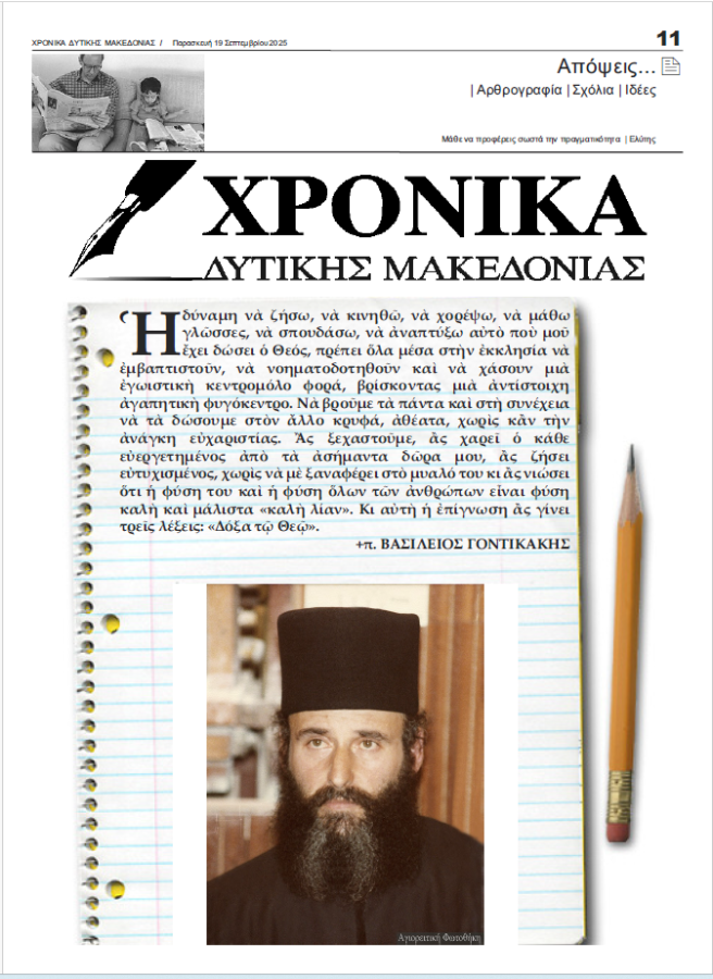 κοινοποίηση FacebookTwitterPinterestWhatsApp Πρέπει να διαβάσετε Χειμερινό Ωράριο Καταστημάτων 2025-2026 1 Νοεμβρίου 2025 Κινηματογράφος 30 Οκτωβρίου 2025 Φ.Ο. ΠΡΩΤΕΑΣ ΓΡΕΒΕΝΩΝ – Μ.Γ.Σ. ΑΝΟΡΘΩΣΙΣ ΒΟΛΟΥ 30 Οκτωβρίου 2025 Θανάσης Σταυρόπουλος: Η μετεγκατάσταση της Πυροσβεστικής Υπηρεσίας Γρεβενών και του ΕΚΑΒ γίνεται πράξη 30 Οκτωβρίου 2025 myGrevenaΔεν είμαστε “φορείς ” της Τέταρτης Εξουσίας. Ο ρόλος μιας εφημερίδας είναι να αφουγκράζεται τους πόνους και τις χαρές ενός τόπου και των ανθρώπων του και αυτούς να διακονεί, να υπηρετεί τις ανάγκες τους, όχι να εξουσιάζει. ΕιδησεογραφίαΑρθρογραφία - ΑπόψειςΠολιτισμός π. Βασίλειος Γοντικάκης: αφιέρωμα των Χρονικών Δυτικής Μακεδονίας Από myGrevena 22 Σεπτεμβρίου 2025 Oκτασέλιδο αφιέρωμα για τον Γέροντα Βασίλειο Γοντικάκη τον Ιβηρίτη (+17.9.2025). Επιμέλεια: Αντώνης Ν. Παπαβασιλείου π. ΒΑΣΙΛΕΙΟΣ ΓΟΝΤΙΚΑΚΗΣ χδμ ΕτικέτεςΑΓΙΟΝ ΟΡΟΣΑφιέρωμαπ. ΒΑΣΙΛΕΙΟΣ ΓΟΝΤΙΚΑΚΗΣ κοινοποίηση FacebookTwitterPinterestWhatsApp Προηγούμενο άρθροΣήμερα Κυριακή – Περίπατος Υγείας στην πόλη, στις 6 το απόγευμαΕπόμενο άρθροΠ. Κουκουλόπουλος: «Η Δυτική Μακεδονία απαιτεί παράταση στο χρονοδιάγραμμα απόσυρσης των λιγνιτικών μονάδων της» Πρόσφατες δημοσιεύσεις Ομόφωνο «Όχι» του Δημοτικού Συμβουλίου Γρεβενών στο υπό διαβούλευση σχέδιο για τον υγειονομικό χάρτη της Δυτικής Μακεδονίας. 1 Νοεμβρίου 2025 ΑΝΤΙΔΡΑΣΕΙΣ ΓΙΑ ΤΗΝ ΚΑΤΑΡΓΗΣΗ ΥΠΟΚΑΤΑΣΤΗΜΑΤΩΝ ΕΛΤΑ 1 Νοεμβρίου 2025 Περιφέρεια Δυτικής Μακεδονίας – Τεχνική Σύσκεψη για το Αστεροσκοπείο του Όρλιακα 1 Νοεμβρίου 2025 Συνάντηση του Περιφερειάρχη με τους κατοίκους για την οδική σύνδεση Αγιόφυλλου- Δεσκάτης 1 Νοεμβρίου 2025 Αφιέρωμα στον διακεκριμένο αγιογράφο Γρηγόριο Μπαλογιάννη 1 Νοεμβρίου 2025