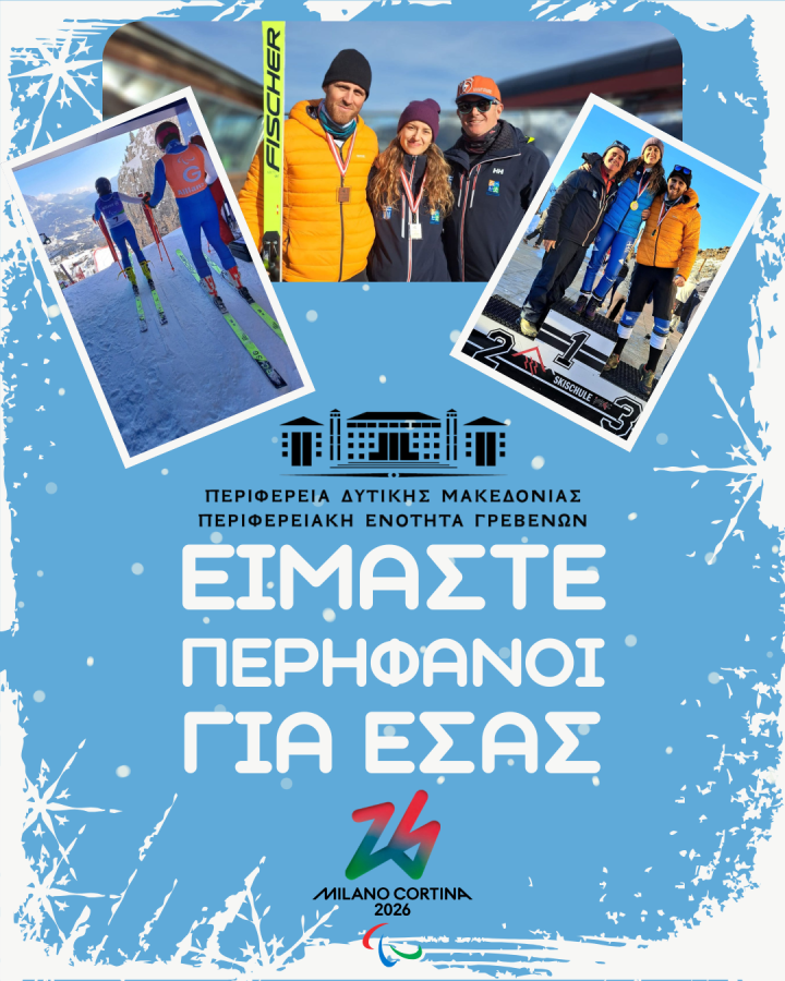 Με την ολοκλήρωση των Χειμερινών Παραολυμπιακών Αγώνων, που πραγματοποιήθηκαν στο Μιλάνο και την Κορτίνα της Ιταλίας την Κυριακή 15 Μαρτίου 2026, αξίζουν θερμά συγχαρητήρια στους συμπολίτες μας αθλητές Εύα Νίκου και Δημήτρη Προφέντζα, οι οποίοι εκπροσώπησαν επάξια την Ελλάδα και τον τόπο μας.