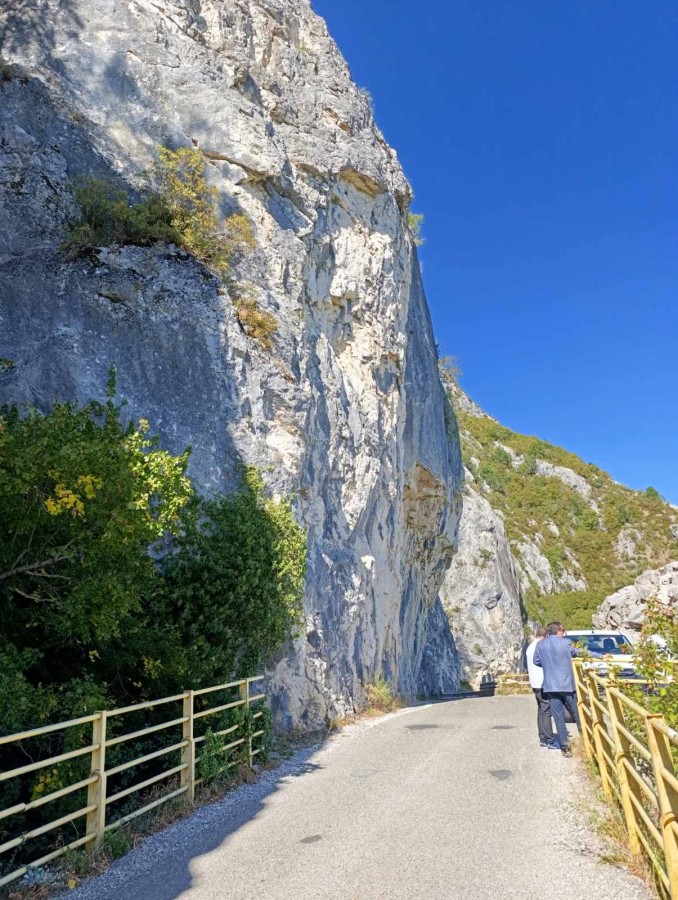 Ακολούθησε η επίσκεψη στο Φαράγγι της Πορτίτσας και στο ολοκληρωμένο πλέον τμήμα του οδικού άξονα που συνδέει το Σπήλαιο με το εμβληματικό Πέτρινο Γεφύρι. Πλέον η διέλευση των οχημάτων πραγματοποιείται με έναν συνολικά ασφαλτοστρωμένο δρόμο καθώς ολοκληρώθηκαν οι εργασίες και στο μέχρι πρότινος χωμάτινο τμήμα μήκους 1,3χλμ.