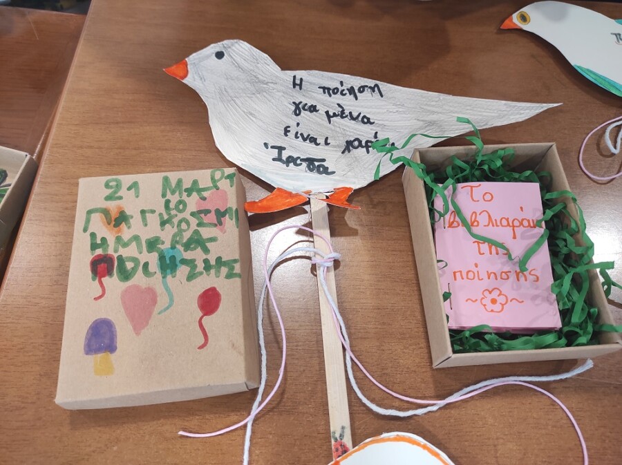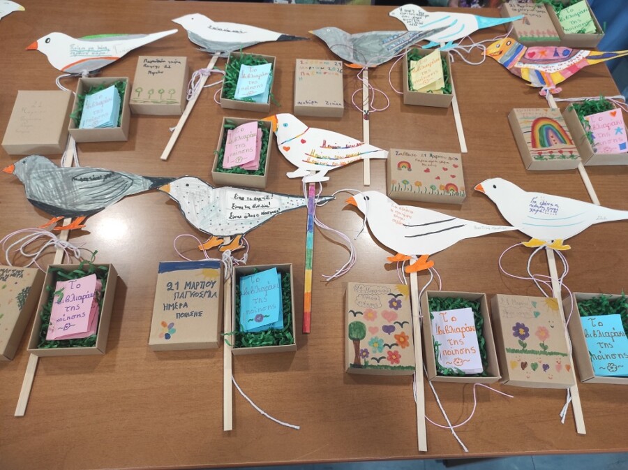 Η παγκόσμια ημέρα ποίησης συμβολικά ταυτισμένη με την πρώτη μέρα της άνοιξης γιορτάστηκε στην βιβλιοθήκη μας με μια δράση για παιδιά το Σάββατο στις 21 Μαρτίου. Σύμβολο της δράσης μας τα πουλιά αγγελιοφόροι της πιο όμορφης εποχής που μας ξυπνά από τον χειμερινό λήθαργο, αναγεννά την πλάση και μας γεμίζει φως. Στην δράση μας όμως, επιστρέφοντας από χώρες μακρινές, δεν έφεραν μόνο την άνοιξη, αλλά και το πολύτιμο δώρο της ποίησης που γεμίζει και αυτή την ψυχή μας με φως, εικόνες νοερές και νοήματα βαθιά!