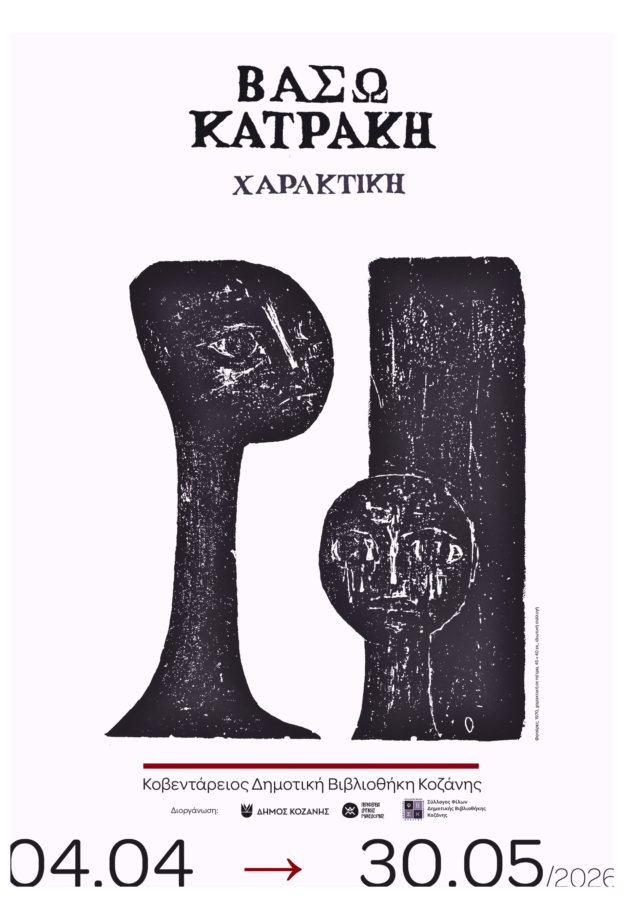 Η Κοβεντάρειος Δημοτική Βιβλιοθήκη Κοζάνης υποδέχεται με ιδιαίτερη χαρά και τιμή την αναδρομική έκθεση της μεγαλύτερης Ελληνίδας χαράκτριας, Βάσως Κατράκη, η οποία άφησε ως δημιουργός, ανεξίτηλο αποτύπωμα στη χαρακτική τέχνη.